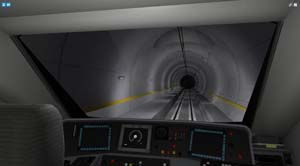 So fährt der Lokführer im Führerstand seines Zuges die 57 Kilometer lange Strecke virtuell ab. Scheinwerferlicht erhellt dabei den grauen Beton. Selbst das gewohnte Steuerpult ist detailgetreu nachgebaut. Zwei Wagen weiter kontrolliert derweil ein Zugbegleiter virtuelle Fahrgäste. Plötzlich wird er zu einem Feuer gerufen. Ein Mülleimer samt Tisch steht in Flammen. Geistesgegenwärtig greift er mit einem Klick zum Feuerlöscher und stoppt den Brand. Der Zug kann ungestört weiterfahren.