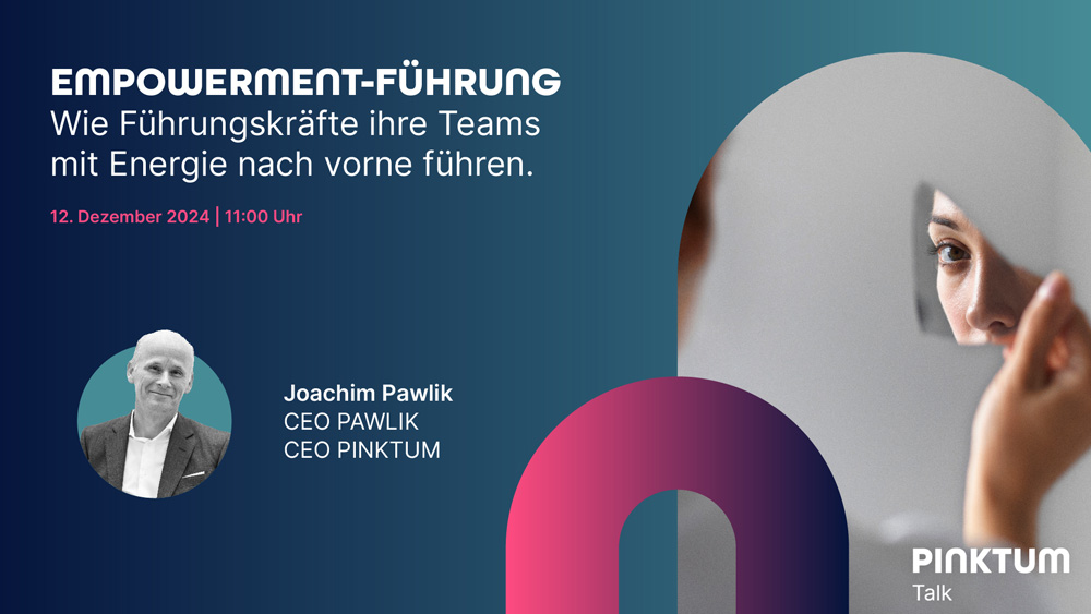 In unserem Webinar PINKTUM Talk am 12. Dezember um 11 Uhr, spricht Joachim Pawlik, CEO PAWLIK und PINKTUM, über die neuen Erkenntnisse, Ansätze und Lösungswege für eine zuversichtliche Empowerment-Führung: